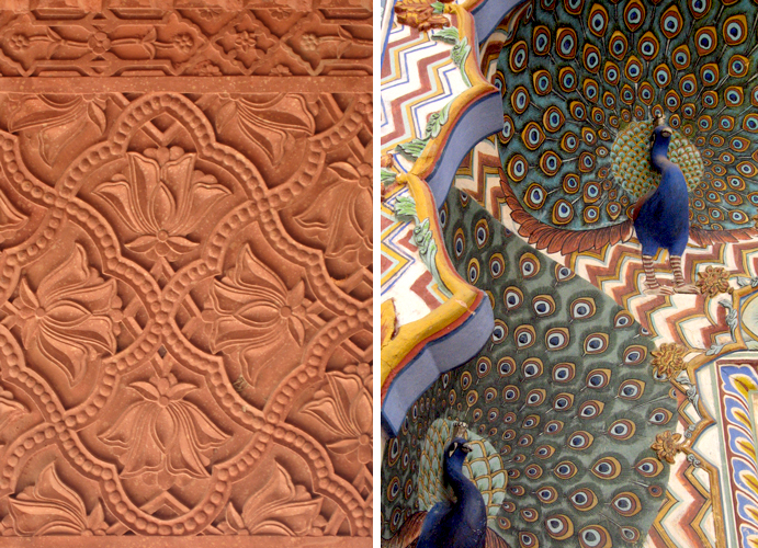 Je suis partie il y a déjà quelques années en Inde du Nord, plus précisément au Rajasthan, pour visiter les belles Udaïpur, Jaïpur et Jodhpur. J’en avais rapporté évidemment beaucoup de clichés, mais je n’avais pas montré celles-ci, que je trouve très inspirantes avec leur profusion de détails :