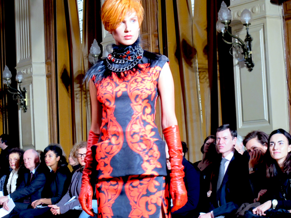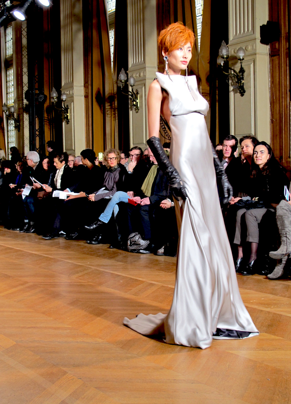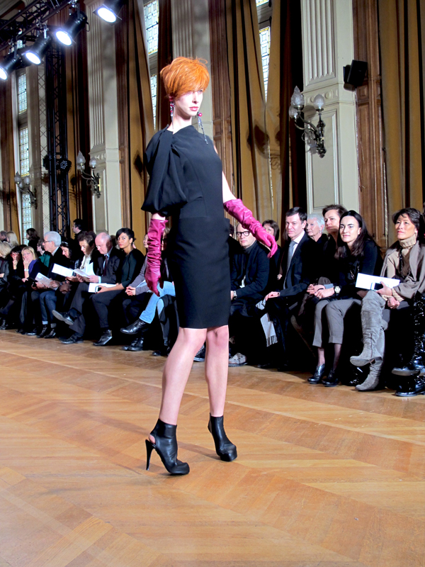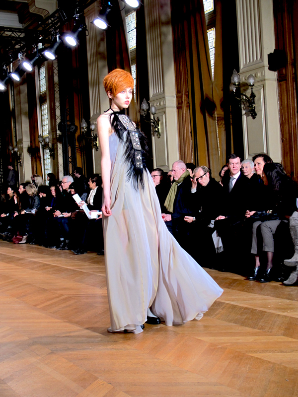 J’avais eu la chance d’assister en septembre dernier au défilé d’Anne Valérie Hash, et de prendre quelques photos du petit monde qui m’entourait. Cette fois, pendant la semaine de la couture, j’étais conviée au défilé d’une invitée* : Béatrice Demulder Ferrant, dans un des salons de la mairie du 4ème. Et j’étais d’ailleurs installée à côté de la charmante TrendyMood, qui a fait un billet très complet hier sur ce défilé !